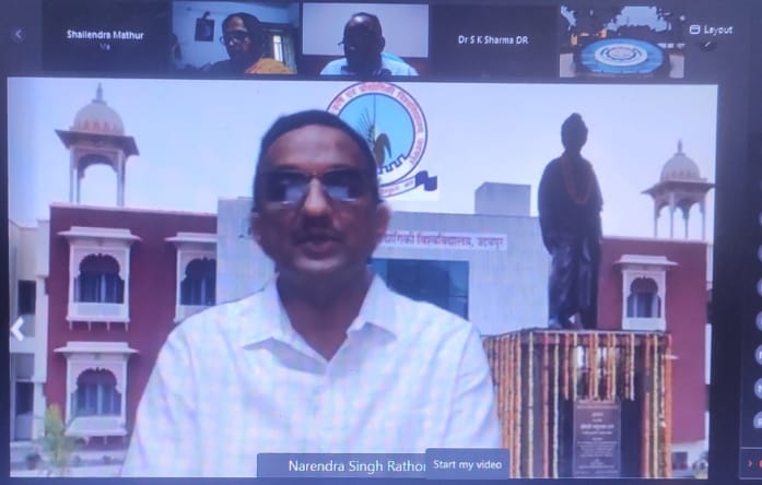 राठौड़ ने अपने व्यक्तिगत अनुभव एवं बौद्धिक सम्पदा अधिकारों के उपयोग एवं सम्पादन पर बात रखी।उन्होंने बताया कि हमें अपने नए संशोधनों के बौद्धिक सम्पदा अधिकार प्राप्त करना बहुत आवश्यक है जिससे हम हमारे संशोधनों को सुरक्षित कर पाएंगे। विश्वविद्यालय दिन ब दिन संशोधनों में ऊंचाइयां हासिल कर रहा है। ये सब हमारे विश्वविद्यालय के संशोधनकर्ताओं की मेहनत का फल है। कुलपति ने डा. माथुर के विश्वविद्यालय में किए गए कार्यों की प्रशंसा की।