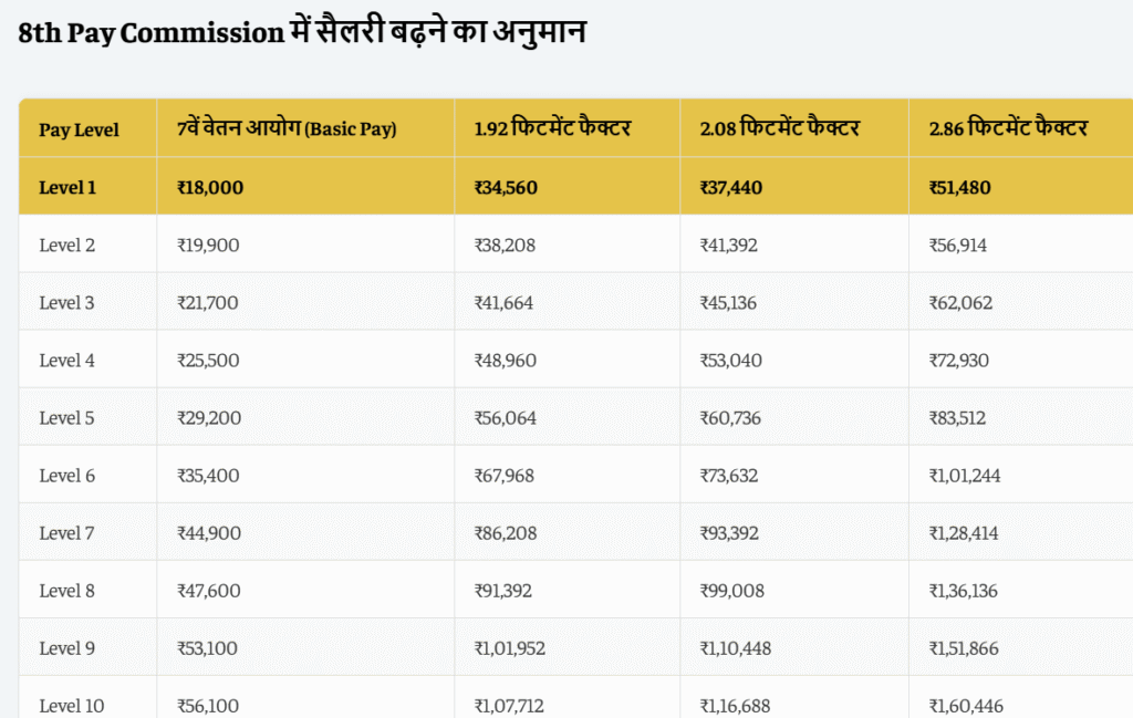 नई बेसिक सैलरी = मौजूदा बेसिक पे × फिटमेंट फैक्टर