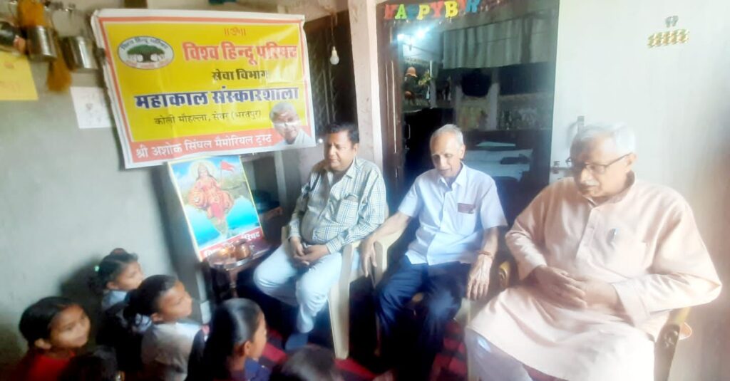 विश्व हिन्दू परिषद सेवा विभाग द्वारा सेवर की सेवा बस्ती में चल रही महाकाल संस्कारशाला में बच्चों के जीवन में बड़ा बदलाव देखने को मिल रहा है। शाला में बच्चे प्रतिदिन आकर देशभक्ति और सनातन संस्कृति के गुण ना केवल सीख रहे हैं बल्कि अपनी जीवन में उतार भी रहे हैं।