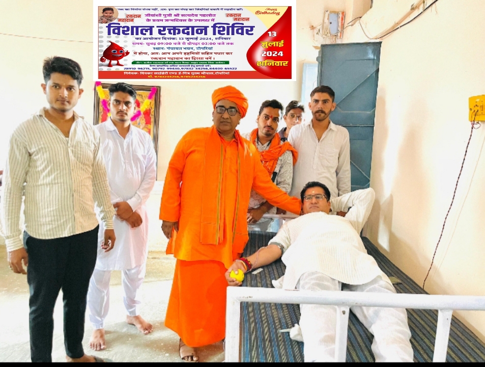 नोहर के निकटवर्ती गांव टोपरियां के पंचायत भवन में गहलोत परिवार द्वारा जीवांशी पुत्री सत्यदेव गहलोत के प्रथम जन्मदिन पर रक्तदान शिविर का आयोजन रखा गया जिसका देवप्रतिमा के आगे दीप प्रज्जवलन कर मंत्रोच्चार द्वारा विधिवत शुभारंभ भारत माता आश्रम के महन्त योगी रामनाथ अवधूत द्वारा किया गया।