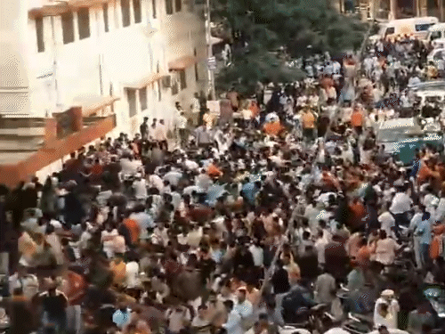 उदयपुर (UDAIPUR) में छात्रों के झगड़े के बाद बवाल खड़ा हो गया। आक्रोशित लोगों ने गाड़ियों में आग लगा दी। वहीं महाराणा भूपाल (एमबी) हॉस्पिटल के बाहर भारी भीड़ जमा हो गई। एक सरकारी स्कूल में दो छात्रों के बीच हुई लड़ाई और झड़प एक बड़े तनाव की वजह बन गई। इसके चलते मॉल में तोड़फोड के अलावा सड़क पर भी जबरदस्त बवाल मचा। लोगों नें कारों में आग तक लगा दी। इसके बाद पुलिस ने लाठीचार्ज करके लोगों को खदे़ड़ा। तनावपूर्ण स्थिति को देखते हुए उदयपुर में धारा-144 लगा दी गई है। इस मामले में कलेक्टर अरविंद पोसवाल ने बताया कि पुलिस पूरे केस की जांच कर रही है, अभी यह नहीं पता चल पाया है कि आखिर मामला क्या था।
