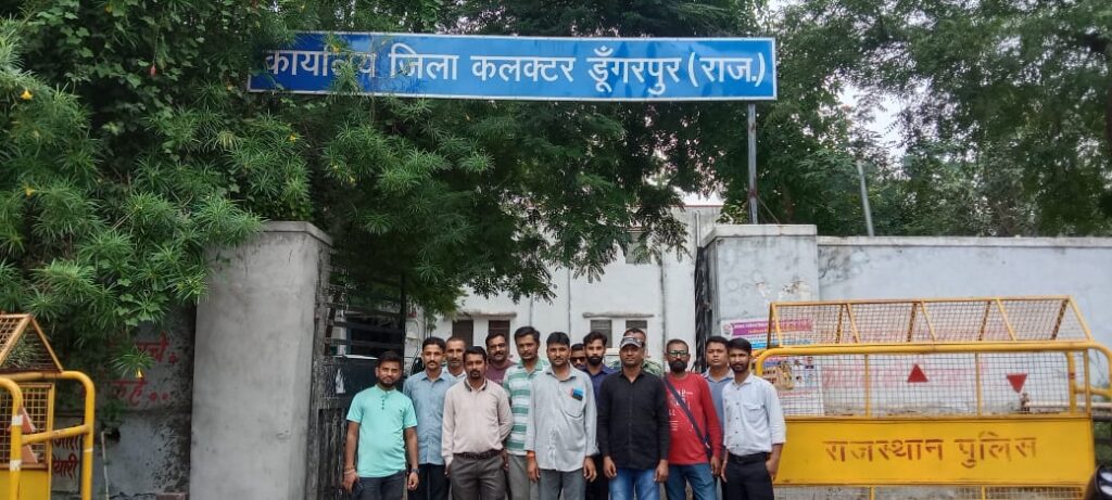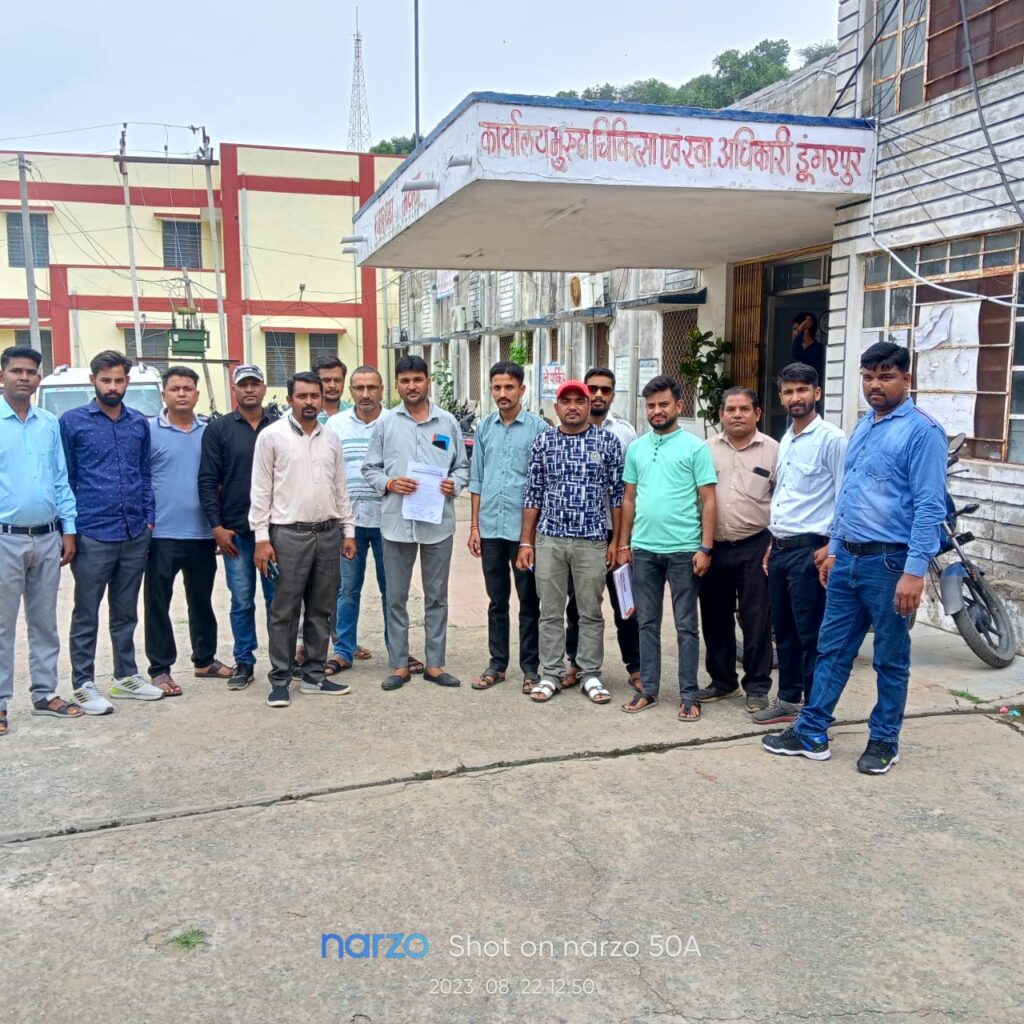 भदेसर चित्तौड़गढ़ में उपखण्ड अधिकारी को ज्ञापन देते हुए एम्बुलेंसकर्मी