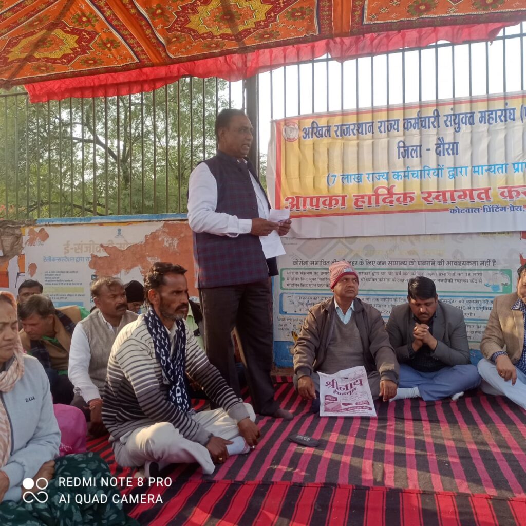कर्मचारी विरोधी नीति के खिलाफ दौसा में सड़क पर उतरे कर्मचारी, जिला कलेक्ट्रेट पर दिया धरना