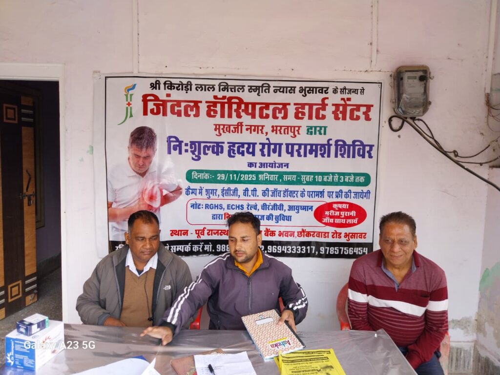 किरोड़ी लाल मित्तल स्मृति न्यास एवं जिंदल हॉस्पिटल द्वारा एक निःशुल्क हृदय जांच एवं परामर्श शिविर का आयोजन निजी भवन में किया गया। शिविर में ब्लड प्रेशर, शुगर और ECG की जांच की गई तथा हृदय रोग विशेषज्ञ डॉ. मितुल ने मरीजों को विस्तृत परामर्श दिया।