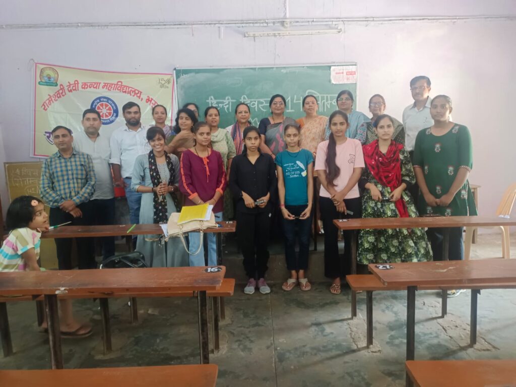 भरतपुर के रामेश्वरी देवी कन्या महाविद्यालय में शनिवार को 14 सितम्बर हिन्दी दिवस के उपलक्ष्य में हिन्दी विभाग एवं एन.एस.एस. के संयुक्त तत्वावधान में हिन्दी दिवस का उत्साहपूर्वक आयोजन किया गया। इस कार्यक्रम में छात्राओं ने बढ़-चढ़कर भाग लिया एवं उन्हें प्रोत्साहन हेतु पुरस्कार वितरण किया गया।