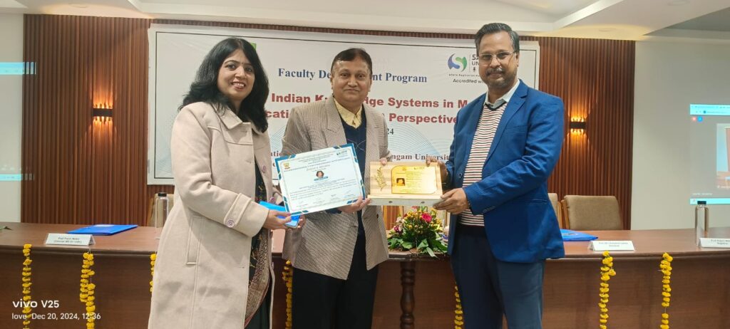 एसोसिएशन ऑफ इंडियन यूनिवर्सिटीज (AIU) और संगम यूनिवर्सिटी, भीलवाड़ा द्वारा आयोजित पांच दिवसीय फैकल्टी डेवलपमेंट प्रोग्राम के अंतिम दिन “इंटीग्रेटिंग नॉलेज सिस्टम्स इन मॉडर्न एजुकेशन: एन एनईपी-2020 परस्पेक्टिव” थीम पर राजकीय कला कन्या महाविद्यालय कोटा के पूर्व प्राचार्य और इंडियन अकाउंटिंग एसोसिएशन कोटा ब्रांच के चेयरमैन डॉ. अशोक कुमार गुप्ता ने “इंडियन नॉलेज सिस्टम: अनवेलिंग कंप्रीहेंसिव टर्मिनोलॉजीज़ एंड ब्रिजिंग ट्रेडिशनल एंड कंटेम्पररी नॉलेज सिस्टम्स” विषय पर व्याख्यान दिया।