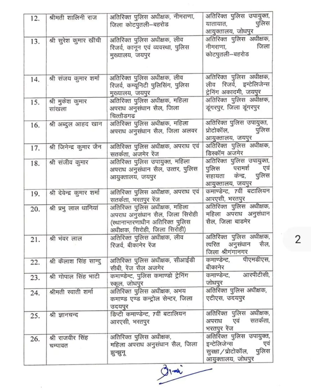 राजस्थान में ASP-DYSP स्तर पर बड़ी तबादला सर्जरी। गृह विभाग ने देर रात आदेश जारी कर दर्जनों अधिकारियों के प्रभार बदले। पूरी लिस्ट यहां पढ़ें।