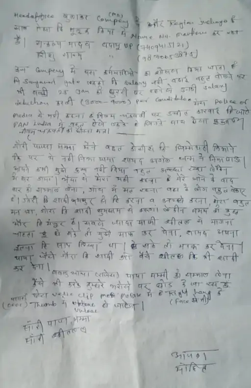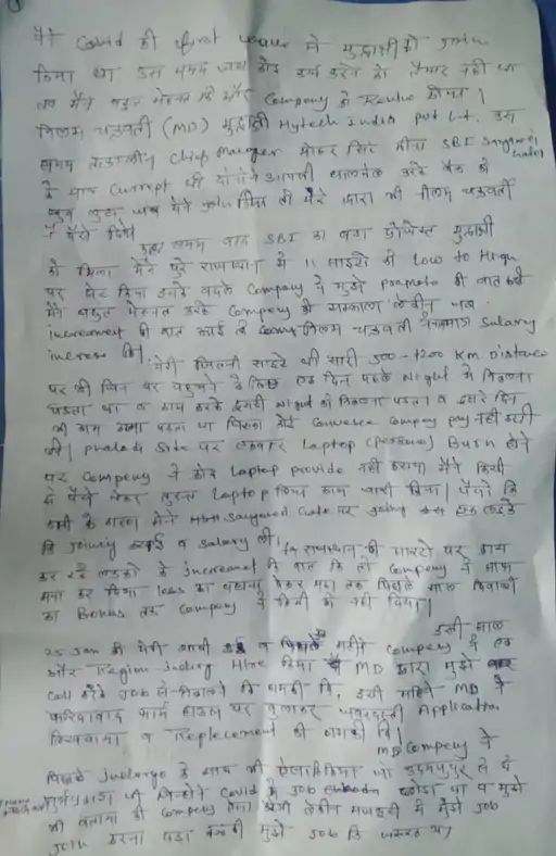 शिकायत में बताया कि कंपनी की मैनेजिंग डायरेक्टर (MD) नीलम चक्रवर्ती है। मोहित के अच्छा काम करने के बावजूद नीलम शारीरिक और मानसिक रूप से टॉर्चर कर रही थी। कोविड के समय में मोहित ने जब कंपनी जॉइन की थी, तब भी नीलम चक्रवर्ती और उस समय ब्रांच मैनेजर मोहर सिंह मीना ने मिलकर SBI में करोड़ों का घोटाला करवाया था। नीलम चक्रवर्ती ने फरीदाबाद स्थित फार्म हाउस पर बुलाकर जबरदस्ती रिजाइन लेटर पर साइन करवाने की भी कोशिश की। MD के बेटे और कंपनी के अन्य कर्मचारियों के साथ बदसलूकी की थी।