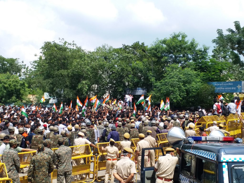 राजस्थान के विद्यार्थियों की विभिन्न मांगों को लेकर लगातार आंदोलन कर रहे छात्र नेता रविन्द्र सिंह भाटी के नेतृत्व में सैकड़ों विद्यार्थियों ने सोमवार को जयपुर में जमकर प्रदर्शन किया। छात्र विधान सभा का घेराव करने निकले थे लेकिन उनको पुलिस ने 22 गोदाम सर्किल पर ही रोक दिया।
