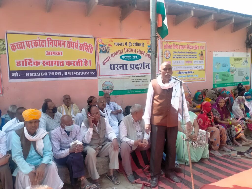 शहर के कच्चे परकोटे के पट्टे देने की गाइड लाइन जारी कराने की मांग को लेकर बुधवार को कच्चा परकोटा नियमन संघर्ष समिति के तत्वावधान में जिला कलेक्ट्रेट के सामने सातवें दिन का क्रमिक धरना जघीना गेट से लेकर सूरजपोल गेट के परकोटवासियों द्वारा समिति के संयोजक जगराम धाकड़ की अध्यक्षता में प्रदर्शन करते हुए दिया गया। क्रमिक धरने में क्षेत्रवार सैकड़ों की तादाद में महिला पुरुषों ने भाग लिया। आजाद समाज पार्टी (काशीराम) के जिलाध्यक्ष अनिल राय एवं उपाध्यक्ष योगेश कुमार ने इस आन्दोलन की मांगों का समर्थन देते हुए संघर्ष समिति द्वारा 10 मार्च की प्रस्तावित रैली में शामिल होने की घोषणा की।