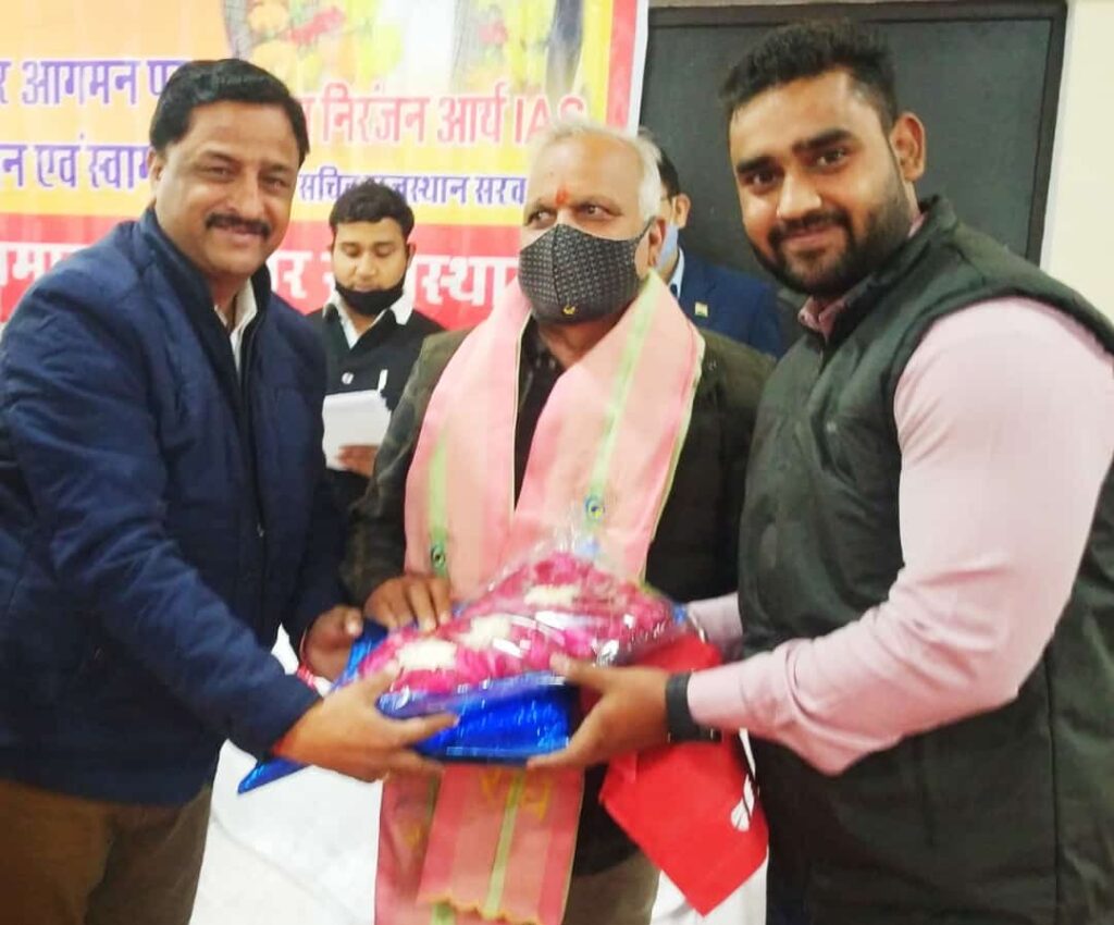इस मौके पर वार्ड 43 के सामुदायिक अंबेडकर भवन में अन्य संगठनों के साथ वार्डवासियों की तरफ से पार्षद दीपक मुदगल ने दुपट्टा पहनाकर और स्मृतिचिन्ह भेंट कर मुख्य सचिव निरंजन आर्य का स्वागत भी किया।