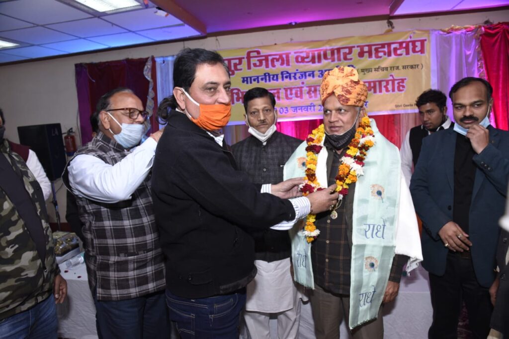 मुख्य सचिव निरंजन आर्य के आगमन पर भरतपुर जिला व्यापार महासंघ द्वारा स्वागत व अभिनंदन का समारोह आदित्य रिसोर्ट घना रोड पर आयोजित किया गया। समारोह में जिले भर के व्यापारिक संगठनों के साथ-साथ कई सामाजिक संगठन भी शामिल हुए। समारोह की अध्यक्षता जिला महामंत्री नरेंद्र गोयल ने की। समारोह में मुख्य अतिथि निरंजन आर्य मुख्य सचिव राजस्थान सरकार एवं अतिथि संभागीय आयुक्त पीसी बेरवाल, जिला कलेक्टर हिमांशु गुप्ता,आईजी थे।