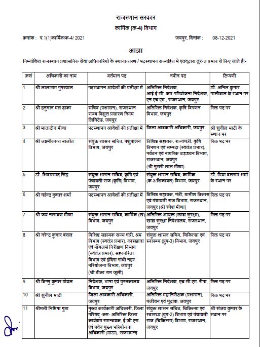 कार्मिक विभाग के संयुक्त सचिव डॉ. रविंद्र गोस्वामी की और से जारी तबादला आदेश के अनुसार इन RAS में से कुछ को नए मंत्रियों के यहां विशिष्ट सहायक व निजी सचिव लगाया गया है।