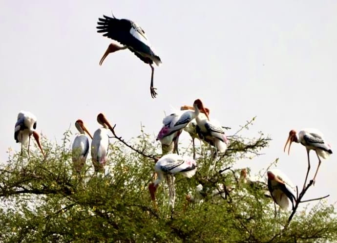 केवलादेव में लौटे रंग-बिरंगे मेहमान | रिकॉर्ड संख्या में पहुंचे पेंटेड स्टॉर्क, झीलों ने ओढ़ी गुलाबी चादर