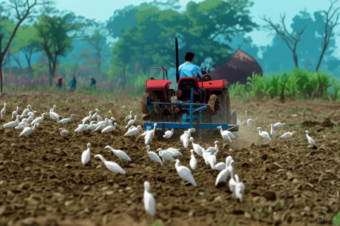 धुंधली सुबह की पहली धूप में अजान बाँध के पास स्थित एक खेत आज कविता बन गया। खेत में ट्रैक्टर चलाते किसान के पीछे सैकड़ों सफेद बगुले पंख फड़फड़ाते हुए उड़ रहे थे—जैसे प्रकृति और श्रम एक ही लय में सांस ले